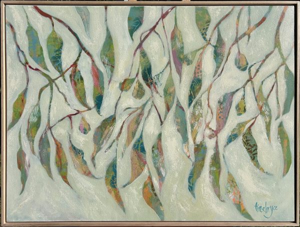 Autumn Light On Gum Leaves is reminiscent of the crisp morning light on our backyard gum trees. Normally glossy leaves seem to shimmer with a pastel softness. From a series created as I began to shift focus from purely botanicals to celebrating our quintessential Australian bush.