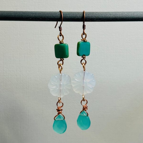 All Mallee Girl Designs Earrings are hand made using a selection of beads from my travels. Loving the colour combinations, they usually become a longer sequence of shapes and form an elegant dangle. Enjoy your unique pair and add to these one off designs as I discover more treasures in my bead collection.