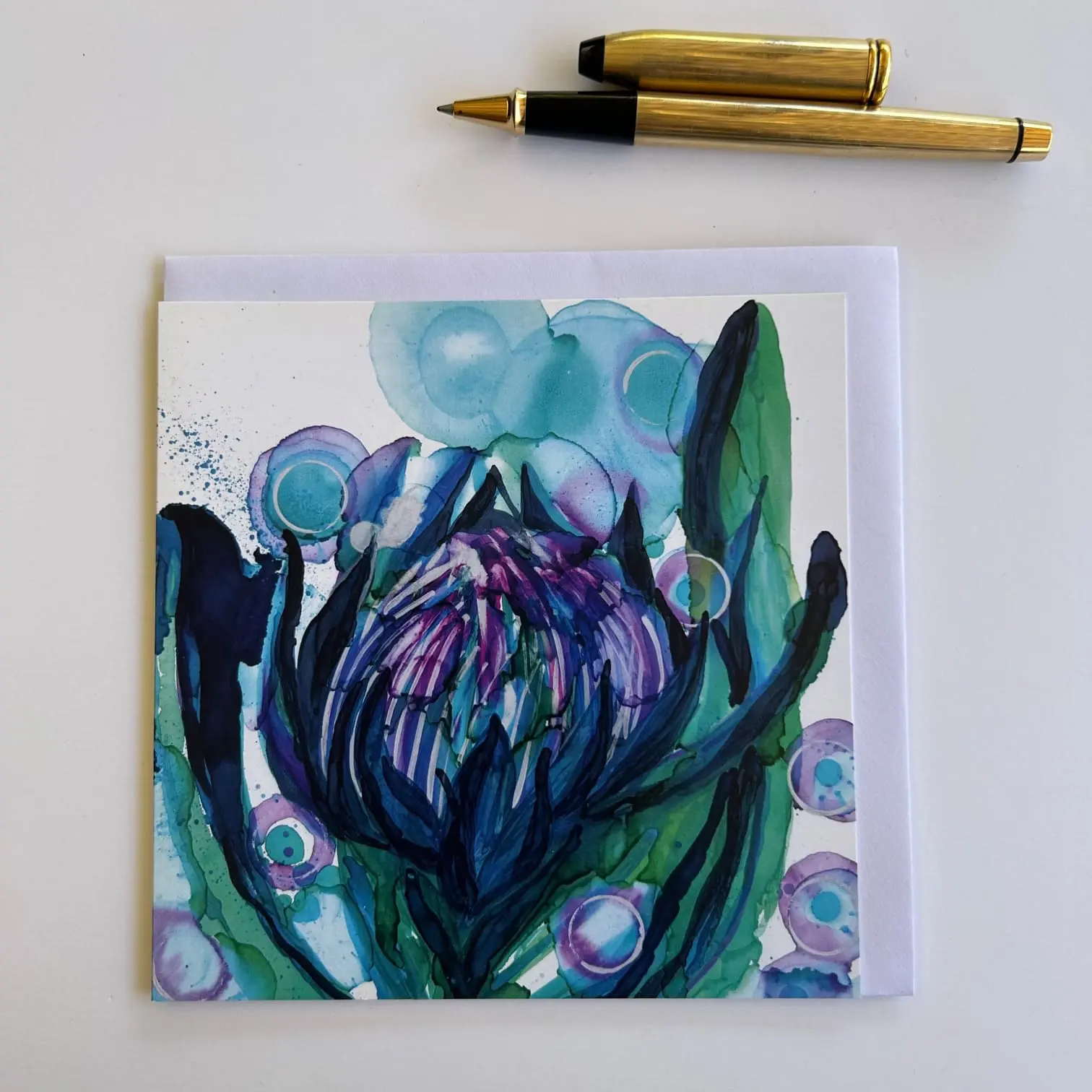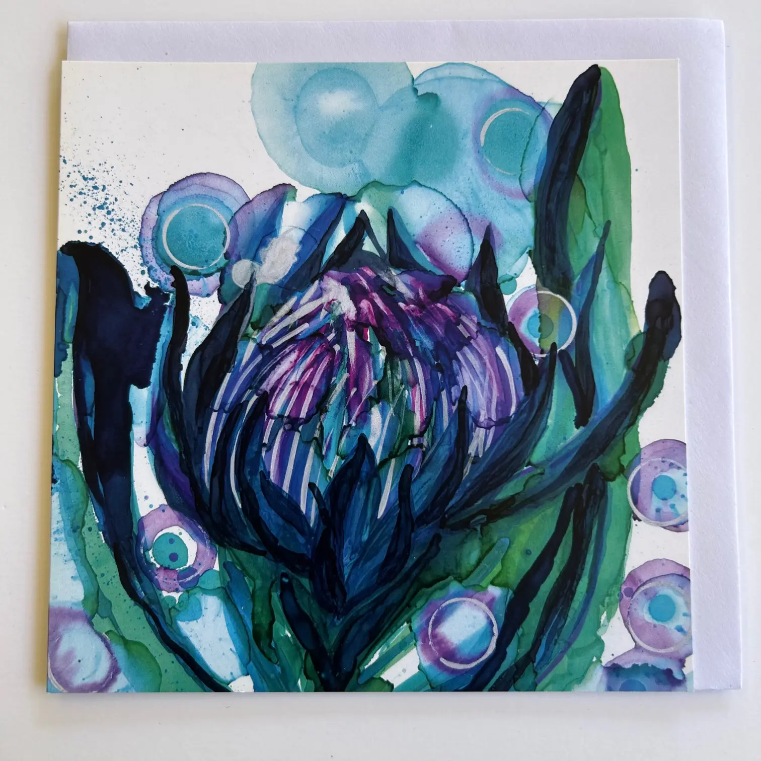 Wild Ink Flowers Series -Blue Protea began as a wild experiment with this new alcohol ink medium.  I love the bright intensity of vibrant colours and the life the ink has when you drip and drop it onto yupo or mineral paper. Happy accidents and what happens when… for lovely outcomes in these images.