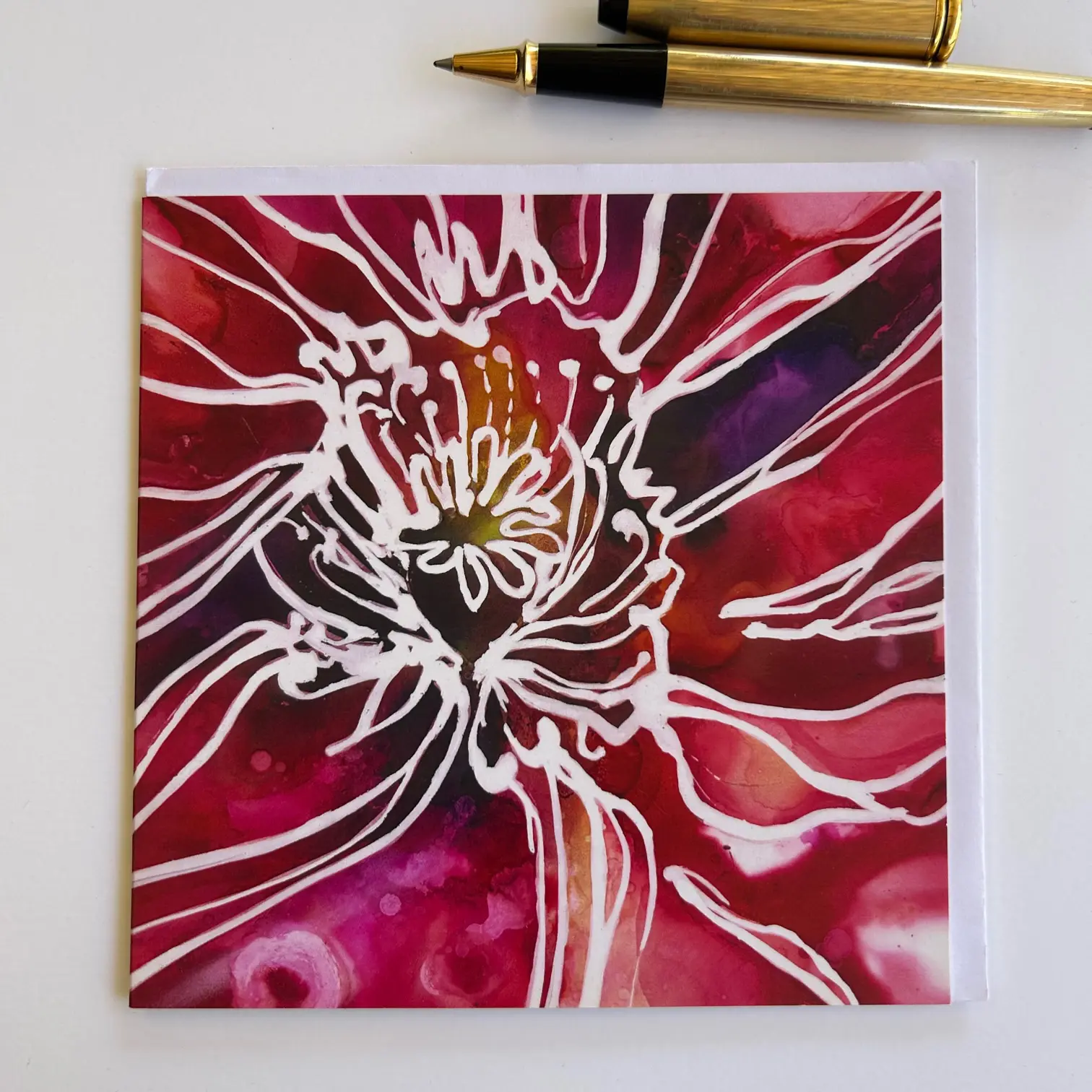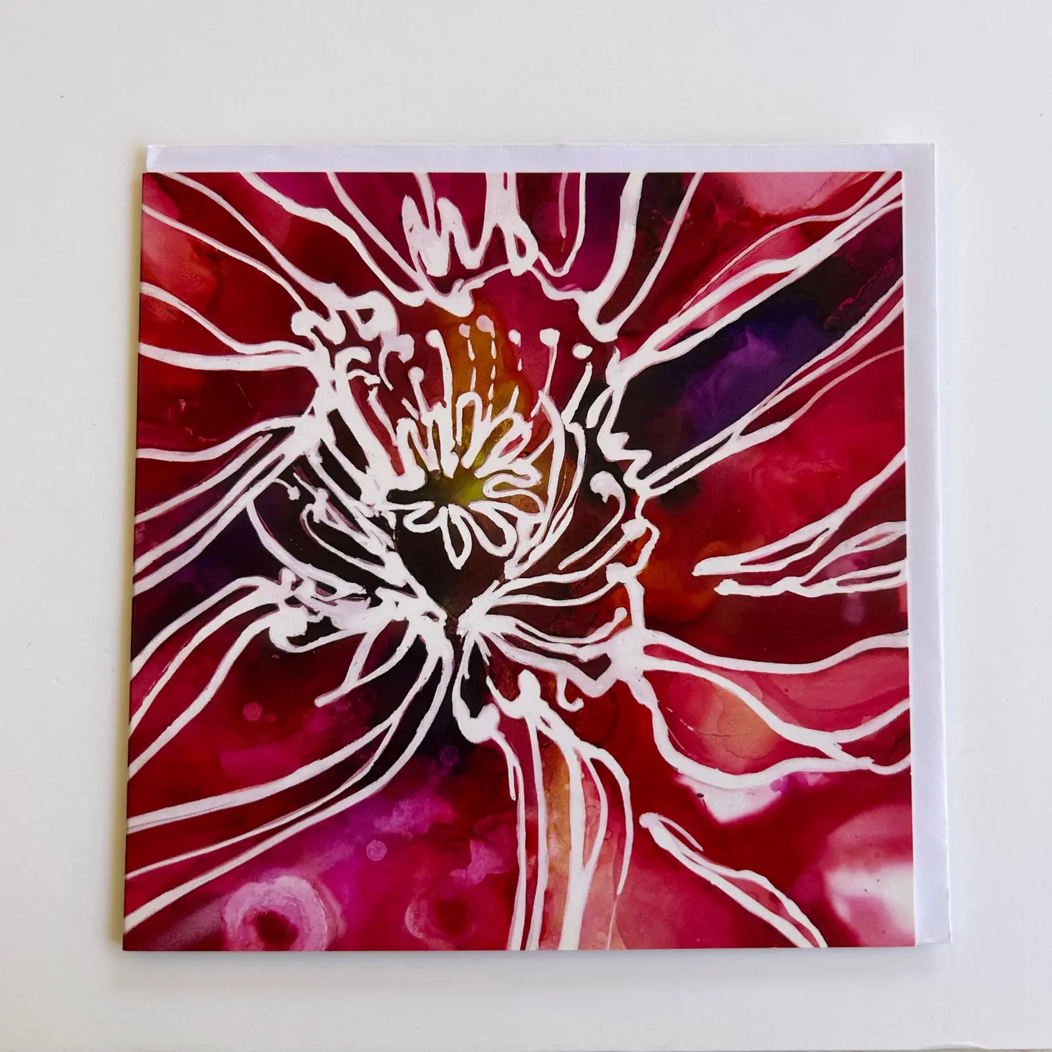 Wild Ink Flowers Series -Poppy began as a wild experiment with this new alcohol ink medium.  I love the bright intensity of vibrant colours and the life the ink has when you drip and drop it onto yupo or mineral paper.